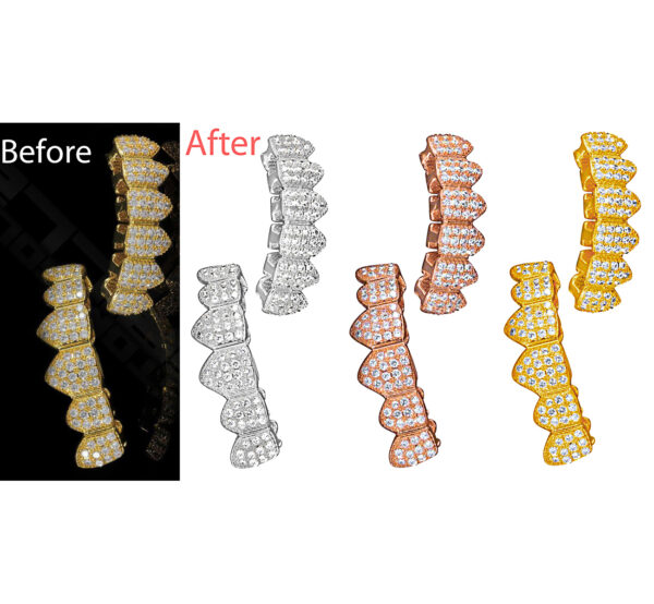 Accurate color representation of gold, silver, platinum, and gemstones is fundamental. Color adjustment guarantees the adornments looks normal and steady over all images.